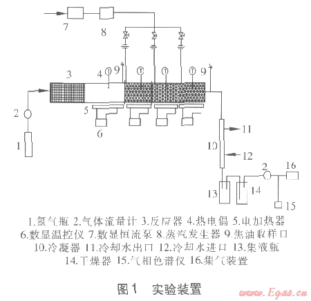 實驗裝置見圖l,包括材料存放區(qū)、生物質(zhì)熱解區(qū)、催化裂解區(qū)、蒸汽發(fā)生器、熱解氣冷卻裝置、檢測系統(tǒng)等。整個反應(yīng)器為長