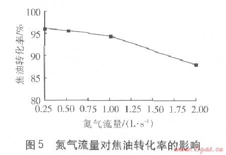 ④氮氣流量對焦油轉(zhuǎn)化率的影響