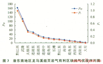式中Poi表示第i個(gè)有利區(qū)塊的頁巖氣找氣優(yōu)度;Foi表示第i個(gè)有利區(qū)塊頁巖氣平均有利度;Si表示第i個(gè)有利區(qū)塊的面積。