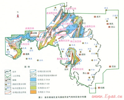 1.2渝東南地區(qū)龍馬溪組頁巖氣有利區(qū)段分布