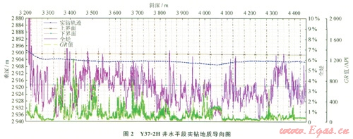 Y37-2H井應用的哈里伯頓公司FEWD隨鉆地質(zhì)導向儀器能夠隨鉆實時測量傳輸2條伽馬曲線和特淺、淺、中、深4條電阻率曲線,為現(xiàn)場地質(zhì)導向提供隨鉆地質(zhì)參數(shù)[4]。