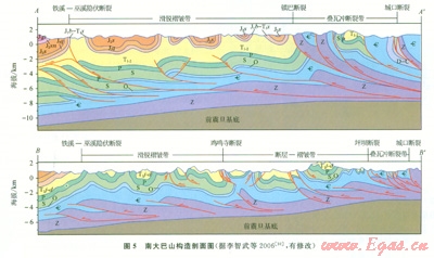 摘 要 位于四川盆地邊緣的大巴山山前帶由于構(gòu)造變形較為強烈,地表地震地質(zhì)情況復(fù)雜,給地震資料采集和處理帶來諸多困難,目前該區(qū)勘探程度還較低。為預(yù)測其油氣勘探前景,從生儲蓋組合、烴源巖條件、儲層條件、蓋層條件等幾個方面分析了該區(qū)油氣成藏條件,發(fā)現(xiàn)其原始成藏條件優(yōu)越,存在3套成藏組合和多種類型的勘探目的層。古油藏解剖結(jié)果表明,山前帶二、三疊系油氣主力烴源巖為上二疊統(tǒng),油氣成藏分為3個階段:①晚三疊世—早侏羅世開始變形,形成寬緩背斜,形成古油藏;②中侏羅世—早白堊世進一步變形,圈閉構(gòu)造定型,部分古油藏裂解,形成油氣藏;③古近紀喜山運動對先期構(gòu)造進行了強烈的改造,造成古油氣藏的調(diào)整與破壞。綜合評價該區(qū)構(gòu)造變形樣式、儲層分布和油氣顯示特征后認為:南大巴山西北部鎮(zhèn)巴斷裂至鐵溪—巫溪隱伏斷裂是油氣勘探有利區(qū),應(yīng)以二疊系長興組和三疊系飛仙關(guān)組礁灘相儲層勘探為主展開工作;東南部雞鳴寺斷裂至鐵溪—巫溪斷裂為二、三疊系出露區(qū),應(yīng)以落實寒武系膏鹽巖下伏地層的保存條件為主進行勘探部署。
