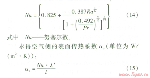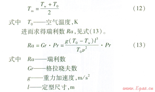 由于翅片管為立式安裝,故此處自然對流換熱計算選用豎壁準(zhǔn)則關(guān)聯(lián)式: