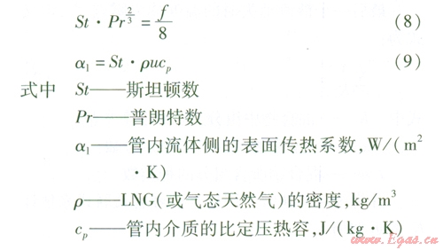 管內(nèi)LNG或氣態(tài)天然氣的對流換熱可以按照內(nèi)部強(qiáng)制對流換熱的實驗準(zhǔn)則關(guān)聯(lián)式進(jìn)行計算。
