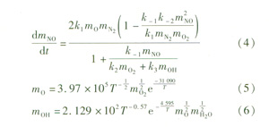 在燃燒過程中有3種氮氧化物生成:瞬時N0x、燃料N0x和熱力N0x。對于天然氣這種清潔燃料的燃燒,熱力N0x生成是主要的。熱力N0x生成有3個主要反應: