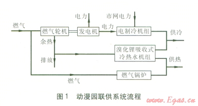 燃氣冷熱電聯(lián)供系統(tǒng)(以下簡稱聯(lián)供系統(tǒng))是以天然氣為一次能源,產(chǎn)生電和可用冷熱能的能源系統(tǒng)[1]。利用燃氣輪機、內(nèi)燃機等發(fā)電機組與溴化鋰吸收式冷熱水機組進行優(yōu)化組合,可實現(xiàn)終端能源的梯級利用和高效轉(zhuǎn)換,避免遠距離輸電損失,提高能源利用效率,降低能耗。[2-12]。