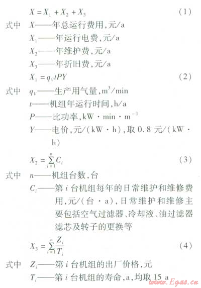 ①合理選擇空氣壓縮機的配置方案可以在滿足生產(chǎn)工藝要求的基礎(chǔ)上降低年總運行費用,提高工業(yè)生產(chǎn)的經(jīng)濟性。