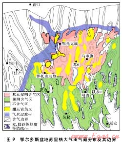 所謂大型化成藏分布的近源性,是指中低豐度油氣藏主要分布于有效烴源灶范圍內(nèi)或與烴源灶緊密關(guān)聯(lián)的范圍內(nèi),成藏分布具明顯的源控性。有兩方面含義:①與烴源灶共生,中低豐度油氣藏群大型化成藏的基本條件是烴源灶和儲集體不僅規(guī)模大,而且兩者必須緊密接觸。②烴源灶與儲集體間存在較大的壓力差或烴類濃度差,以保證油氣有效成藏和大規(guī)模成藏。近期通過對鄂爾多斯、四川、松遼、吐哈和準(zhǔn)噶爾等盆地已發(fā)現(xiàn)中低豐度油氣藏解剖研究,發(fā)現(xiàn)這類油氣藏分布于烴源灶范圍內(nèi)的比例高達(dá)90%以上。由于成藏分布的近源性,中低豐度氣藏群分布具有明顯的地域性,主要分布于坳陷湖盆的向斜區(qū)和廣大斜坡區(qū)、克拉通盆地古隆起的圍斜部位與前陸盆地緩翼斜坡區(qū)。