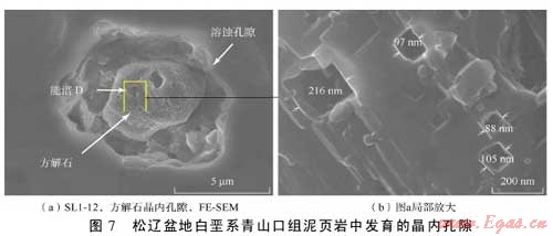 利用掃描電鏡和場發(fā)射掃描電鏡二次電子成像技術對松遼盆地主要生油層白堊系青山口組泥頁巖中發(fā)育的孔隙和微裂縫進行了系統(tǒng)的成像觀察,發(fā)現(xiàn)該套頁巖中主要發(fā)育了5種類型孔隙即基質(zhì)晶間孔、有機質(zhì)孔、溶蝕孔、粒間孔、晶內(nèi)孔及微米—亞微米級(納米級)微裂縫,微裂縫包括充填縫、溶蝕縫及層間縫。各種類型孔隙與微裂縫伴生發(fā)育,并可能彼此連通。這種復雜微裂縫網(wǎng)絡-孔隙系統(tǒng)的存在為油氣從烴源巖向外排驅(qū)提供了有效通道,同時也為滯留在泥頁巖中的部分油氣提供了有效的儲集空間。該套地層中各類型孔隙尺寸為納米—微米級,可能主要受頁巖基質(zhì)的微觀孔隙結(jié)構、礦物組成、有機質(zhì)類型以及有機質(zhì)的熱演化程度等因素的影響。