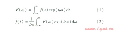 式中,F(ω)稱為f(t)的傅里葉積分,又稱為f(t)的傅里葉變換,f(t)稱為F(ω)的逆變換;t為時域變量,ω為頻域變量;i2=-1。