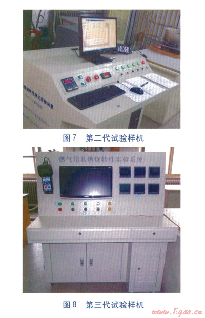 在深入研究燃氣互換性理淪的基礎(chǔ)上,對當前行業(yè)通用的試驗氣“華白數(shù)、燃燒勢兩指數(shù)”控制方法進行了擴展,通過大量試驗,提出了試驗氣“多組分、多指數(shù)”控制方法(如以“華白數(shù)、燃燒勢、黃焰指數(shù)三指數(shù)”為代表的控制方法)。“多組分、多指數(shù)”試驗氣配制技術(shù)成果已經(jīng)成功推廣應(yīng)用到行業(yè)知名企業(yè),為行業(yè)發(fā)展起到了引領(lǐng)和示范作用,相關(guān)研究成果已多次在全國行業(yè)會議上交流[18-21]。試驗氣配制與燃具適應(yīng)性試驗裝置已經(jīng)投放國家燃氣用具質(zhì)量監(jiān)督檢驗中心使用,第二、三代試驗樣機分別見圖7、8。