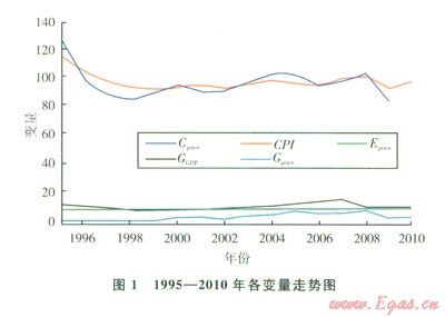 筆者的數(shù)據(jù)來源于l995-2010年《中國統(tǒng)計年鑒》、國家統(tǒng)計局網(wǎng)站、相關(guān)文獻等,其中2010年化學(xué)工業(yè)品出廠價格指數(shù)尚無法查閱。