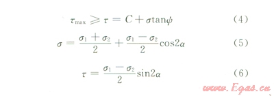 筆者采用巖石力學(xué)中應(yīng)用最為廣泛的Mohr-Cou-lomb強(qiáng)度判定準(zhǔn)則,應(yīng)用直線型強(qiáng)度曲線對(duì)井眼附近塊體進(jìn)行強(qiáng)度判斷。直線性表達(dá)式為: