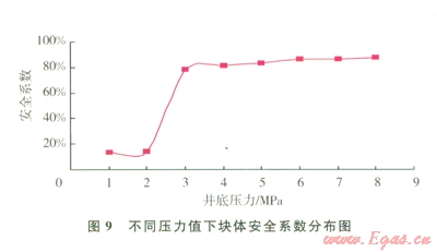 2)通過定量分析各種狀態(tài)井眼附近塊體失效情況,從安全系數(shù)上看,塊體在28 MPa幾種狀態(tài)下都超過78%。