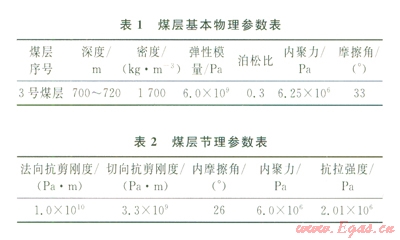 筆者選擇的研究對(duì)象為3號(hào)煤層,煤層的各種力學(xué)參數(shù)設(shè)置參照眾多研究成果,見表l、2。