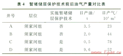 針對研究的四川油氣田某區(qū)塊須家河組儲層,須家河組儲層段中的2口開發(fā)井實施多級架橋暫堵儲層保護技術前后的油氣產量對比(表4)。實施多級架橋暫堵儲層技術的2口開發(fā)井,其油氣產量得到明顯提高,充分說明多級架橋暫堵技術對值層具有良好的保護作用。
