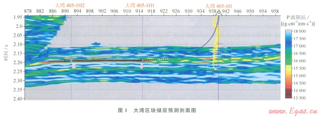 大灣區(qū)塊氣藏埋深一般在4000m左右,同時(shí)受上部膏鹽巖影響,造成飛仙關(guān)組和長(zhǎng)興組地震響應(yīng)特征弱,再加上發(fā)育逆斷層、儲(chǔ)層非均質(zhì)性強(qiáng)、厚度變化大等因素,大大增加了儲(chǔ)層預(yù)測(cè)和含氣性預(yù)測(cè)的難度。通過融合超深礁灘相儲(chǔ)層預(yù)測(cè)技術(shù)和含氣性預(yù)測(cè)技術(shù),定量預(yù)測(cè)優(yōu)質(zhì)氣層空間展布特點(diǎn),及時(shí)優(yōu)化井身軌跡,確保盡量多鉆遇優(yōu)質(zhì)氣層[2]。