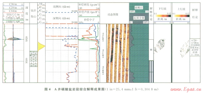 碳酸鹽巖儲集層非均質(zhì)性強(qiáng)、各向異性大,儲集層以基質(zhì)孔隙、溶蝕孔洞、裂縫為主,結(jié)構(gòu)復(fù)雜。測井解釋難度大,而目前現(xiàn)有的裂縫識別測井方法探測深度太淺,一般在3m以內(nèi),這只能定性給出井壁附近地層裂縫發(fā)育情況,難以了解儲層橫向變化或井壁裂縫向外延伸發(fā)育情況,在裂縫性儲集層中測井評價(jià)成果常與試油結(jié)果發(fā)生矛盾。針對這些問題,中同石油渤海鉆探工程公司測井公司白2001年開始研究遠(yuǎn)探測聲波反射波成像測井技術(shù),利用聲波反射波信息來識別井旁3~10m范圍內(nèi)的儲層信息,彌補(bǔ)了現(xiàn)有測井方法探測深度不足的缺陷。