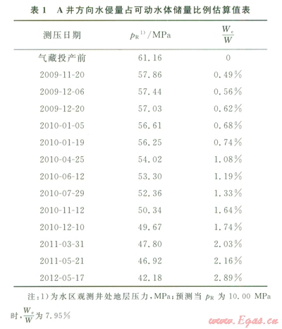 根據(jù)水區(qū)觀測(cè)井監(jiān)測(cè)的地層壓力下降數(shù)據(jù),采用式(2)或式(3)能計(jì)算侵人氣藏水量與水區(qū)累積排水量之和在可動(dòng)水體儲(chǔ)量中所占的比例;根據(jù)原始地層壓力與預(yù)計(jì)廢棄地層壓力之間的差值,可估算極限水侵量所占比例。由極限水侵量比例與目前水侵量比例的差值,結(jié)合氣藏產(chǎn)水狀況,能大致預(yù)判后續(xù)水侵影響程度。上述分析結(jié)果能為確定優(yōu)化治水對(duì)策、提高治水的針對(duì)性和氣藏開(kāi)發(fā)效益提供技術(shù)參考。