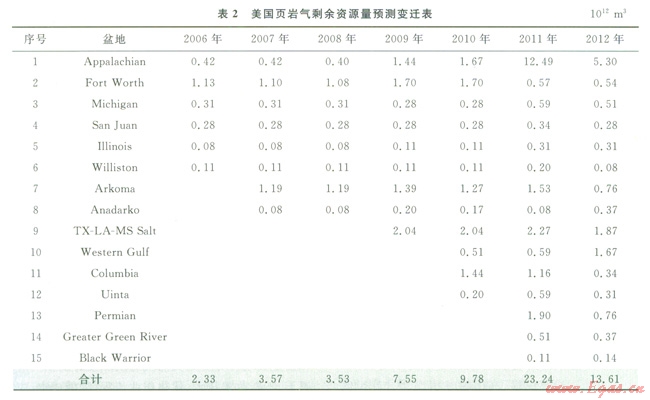 初步研究結論指出(圖8),中國南方地區(qū)、華北地區(qū)、新疆塔里木盆地、西藏羌塘盆地發(fā)育海相頁巖,南方地區(qū)、華北地區(qū)、新疆地區(qū)發(fā)育海陸過渡相—湖沼相煤系頁巖,松遼盆地、渤海灣盆地、鄂爾多斯盆地、四川盆地等發(fā)育湖相頁巖,上述3類頁巖都具備頁巖氣形成與富集的條件。國內外專家預測:中國頁巖氣資源非常豐富,或許超過常規(guī)天然氣資源量(圖5、表l)。實際上,中國到底會有多少頁巖氣資源,從目前國內流行的多版本資源數(shù)據(jù)就可見一斑,每個預測數(shù)據(jù)看似依據(jù)都很充分,但實際又都不可信,關鍵緣由是目前中國頁巖氣資源預測的基礎非常差。美國是在經(jīng)歷了數(shù)l0年頁巖氣勘探開發(fā)實踐的基礎上,才逐步解決了頁巖氣資源問題,其頁巖氣資源量估算基礎是建立在工業(yè)化規(guī)模開發(fā)的9大頁巖氣區(qū)帶、近60 000口頁巖氣生產(chǎn)井、近30年頁巖氣規(guī)模生產(chǎn)經(jīng)驗上,采用了單井(生產(chǎn))最終可采儲量法。即便是如此,美國的頁巖氣資源量在不同經(jīng)濟、技術條件下,仍然還會隨時有較大的變化(表2) [14]。