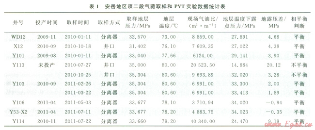 結合傳統(tǒng)與室內(nèi)實驗判斷結果綜合分析安岳地區(qū)須二段氣藏為飽和凝析氣藏,由于儲層的非均質(zhì)性導致了局部有少量原油存在,即使個別井口可能會出現(xiàn)開井初期產(chǎn)出大量原油的現(xiàn)象,但是隨著生產(chǎn)的進行,原油產(chǎn)出量也會迅速下降,由此,將安岳地區(qū)須二段氣藏類型確定為帶“油墊”的飽和凝析氣藏。從成藏的角度看,可能由于致密強非均質(zhì)氣藏中原油的差異聚集或原油的裂解,致使局部存在少量原油。