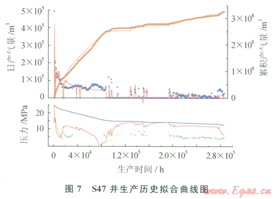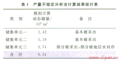 通過前面典型曲線和生產(chǎn)歷史擬合分析,最終確定S47井裂縫系統(tǒng)動態(tài)儲量為6.34×l08m3;(表1)。在儲量模擬計算過程中,可以發(fā)現(xiàn)儲集單元一和儲集單元二的儲量基本被采出,而由于地層水侵的影響,儲集單元三僅部分儲量被采出,絕大部分儲量被地層水封存,是氣藏下一步進行挖潛的主要目標(biāo)。