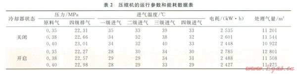 3)如果能夠通過技術(shù)改造,在不增加循環(huán)水量的前提下,進(jìn)一步改善冷卻器的冷卻效果、提高各級分離器分離效率,降低壓縮機(jī)各級進(jìn)氣溫度和各級氣體的含液率,對提高壓縮機(jī)效率、降低壓縮機(jī)能耗、實現(xiàn)壓縮機(jī)節(jié)能經(jīng)濟(jì)運(yùn)行具有重要的意義。