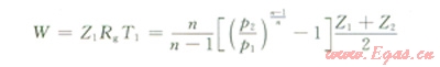 式中W為單位質(zhì)量天然氣的理論壓縮功,kJ/kg;Z1、Z2為進(jìn)、排氣壓力下的氣體壓縮性系數(shù);Rg為氣體常數(shù),kJ/(kg·K);T1為壓縮缸進(jìn)氣溫度,K;n為壓縮過程多變指數(shù);P1、P2為壓縮缸進(jìn)、排氣壓力,MPa。