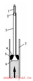 (圖:1-螺桿;2-螺母;3-作用套管;4-作用墊片;5-堵漏膠圈;6-作用椎體;7-燃?xì)夤艿?;箭頭指示為來氣方向)