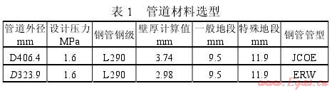設(shè)計強度系數(shù)可根據(jù)《城鎮(zhèn)燃氣設(shè)計規(guī)范》(GB50028—2006)的分級地區(qū)選取合理系數(shù),高壓、次高壓管道已采用了較高等級的材料,焊接系數(shù)取1。如寶雞市天然氣三期利用工程就使用D406.4螺旋縫埋弧焊鋼管和D323.9直縫埋弧焊鋼管,材質(zhì)L290MB,B級鋼管,設(shè)計壓力1.6MPa,壁厚根據(jù)管線敷設(shè)所在不同地區(qū)劃分標(biāo)準(zhǔn)(考慮了今后發(fā)展),其選取如表1所示: