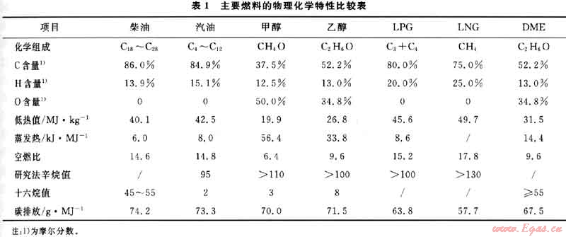 在石油供應及其價格隨世界地緣政治和經(jīng)濟形勢變化而不斷劇烈波動的21世紀,天然氣作為發(fā)動機燃料有很多優(yōu)點:單位熱值(比能量)最高,尾氣排放最少,C02排放僅為同熱值汽柴油排放量的3/4,利于改善大氣質量,供應可靠,價格低且穩(wěn)定少波動。主要燃料的物理化學特性比較見表1[2]。