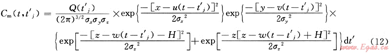 t’≠t當時,即泄漏源不是連續(xù)源也非瞬時源時,此時,上式中的Q(t-t’)應取泄漏源Q(t’),則非連續(xù)源非穩(wěn)態(tài)泄漏擴散模型計算式應修正為: