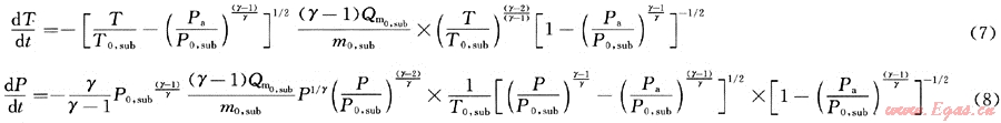 據(jù)臨界壓力判別標準,并結(jié)合臨界流、亞臨界流變孔徑孔口泄漏下任意時刻的P、T、ρ、Qm、m的計算關系式[1],運用格林函數(shù)可得出其溫度和壓力經(jīng)驗解析公式如下: