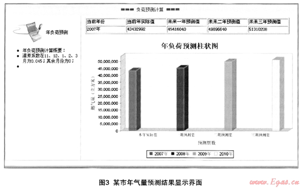城市燃氣管網建設項目立項之前,需要進行燃氣用氣量預測分析,如果沒有用戶,沒有燃氣使用需求,那么投資建設的管線項目投資收益率低,從某種程度上講,投資時間過早或不宜,投資決策失誤。應用氣量預測系統(tǒng)中的年用氣量預測功能模塊對城市燃氣未來3年用氣量進行預測,可以對燃氣氣量未來發(fā)展有進一步的認識,從而為項目投資決策提供重要依據。