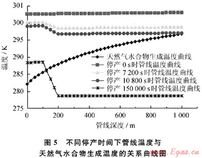 4) 隨著關井時間的延長,管線內(nèi)溫度逐漸接近于外界環(huán)境溫度,為防止天然氣水合物的生成,要盡量延長無接觸時間。