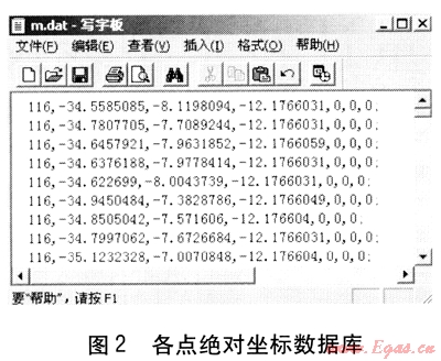 獲取點(diǎn)云數(shù)據(jù)后,對(duì)數(shù)據(jù)模型進(jìn)行重構(gòu),包括點(diǎn)云處理和坐標(biāo)系對(duì)齊等。為進(jìn)一步進(jìn)行數(shù)據(jù)處理,將測量所得的各點(diǎn)絕對(duì)坐標(biāo)分段導(dǎo)入數(shù)據(jù)庫,數(shù)據(jù)庫格式便于MATLAB軟件調(diào)用即可,各點(diǎn)絕對(duì)坐標(biāo)數(shù)據(jù)庫見圖2。