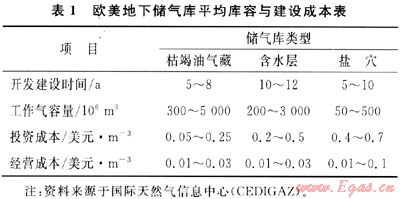 不同國(guó)家或同一國(guó)家不同地區(qū)的儲(chǔ)氣庫(kù)成本也有區(qū)別。最新數(shù)據(jù)表明,對(duì)于枯竭油氣藏儲(chǔ)氣庫(kù),美國(guó)的單位投資成本為0.36歐元/m3,英國(guó)為0.52歐元/m3;鹽穴儲(chǔ)氣庫(kù),美國(guó)的單位投資成本為0.50歐元/m3,英國(guó)為0.56~1.00歐元/m3。
