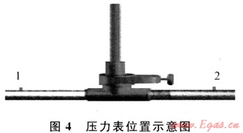 具體試驗步驟:選擇空曠場地,搭建試驗平臺;剝防腐層,除去管線表面油污、底漆;測量管線橢圓度,保證封堵點位置橢圓度不超過1%;測量管線壁厚,盡量避開嚴重腐蝕區(qū)域;選擇合適點,焊接封堵三通、注氮短節(jié)、平衡短節(jié)以及管線封頭;對焊道進行滲透探傷檢查;安裝夾板閥、球閥,壓力表位置安裝示意圖見圖4,從口2注入氮氣,壓力為2.0MPa;安裝1200H開孔機和T101型開孔機,開DN600mm封堵孔和2號平衡孔;調(diào)試、安裝封堵器,進行封堵操作,封堵操作時先壓力平衡后方可進行下一步的操作;經(jīng)測量和計算,封堵尺寸下到位后,打開2號球閥放空氣體;使用火焰切割設(shè)備,切開2號球閥一側(cè)封頭,向管道內(nèi)安裝氣囊并給氣囊充氣;觀察1號位置處短節(jié)上的壓力表看壓力是否變化,用肥皂水噴氣囊貼管內(nèi)壁處,若壓力表無變化,氣囊貼管壁處無氣泡則封堵成功,否則封堵視為不成功,此時應(yīng)分析封堵不成功的原因,并有針對性地提出解決問題的措施,直到封堵成功為止。封堵試驗完成后,對1號位置處進行泄壓;拆卸封堵設(shè)備和焊接在試驗管道上的三通等機具、器材,并將它們擺放就位。