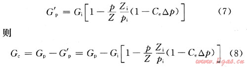 根據(jù)補給氣藏物理模型,應用物質(zhì)平衡原理,假設氣藏有底水或邊水水侵,并考慮巖石與束縛水膨脹的影響,推導出補給氣藏物質(zhì)平衡方程: