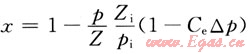對于定容封閉的干氣氣藏,氣藏將不會產(chǎn)水和有水體侵入,即We=0、Wp=0、Wc=0,代入式(2)整理后即可得到熟悉的定容封閉干氣氣藏物質(zhì)平衡方程: