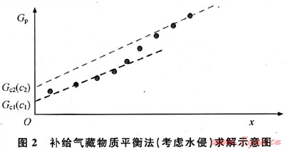 當G小于原始地質(zhì)儲量時,說明氣藏的補給量不大,補給氣量并未被采出,對于各個階段的動態(tài)儲量和補給氣量,可以利用重復線性回歸法求得不同階段的Gc(圖2),圖2中