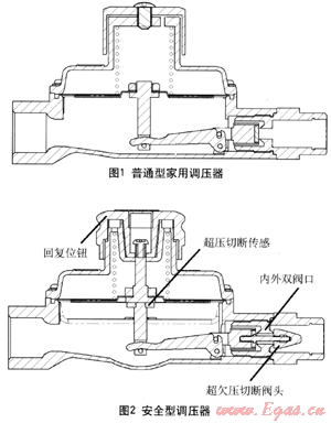圖1和圖2分別是普通型家用和新研發(fā)的安全型調(diào)壓器。