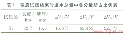 同時(shí),分析預(yù)測(cè)曲線中V的組成,其中DV1、DV2、DV3各自所占的比例見(jiàn)表l,由水壓縮性計(jì)算而得的DV3,其值超過(guò)DV1,是試壓進(jìn)水量的一個(gè)重要因素,不可在計(jì)算中忽略。