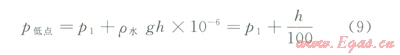式中h為試壓段高差,m;r水為水的密度,kg/m3;g為重力加速度,取為10m/s2。
