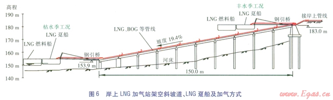 岸上LNG加氣站架空斜坡道、LNG躉船及加氣方式見圖6。