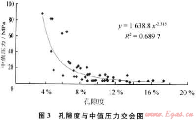 有效孔隙度下限確定有兩種方法:①根據(jù)壓汞資料,分析中值壓力與孔隙度的關(guān)系,當(dāng)孔隙度小于某一值時(shí),中值壓力迅速增大,說明當(dāng)孔隙度小于該值時(shí),汞基本壓不進(jìn),即這部分孔隙基本為無效孔隙[6~7](圖3),利用該法確定的研究區(qū)有效孔隙度下限為7%;②統(tǒng)計(jì)試油產(chǎn)層段與干層段孔隙度的分布特征來確定(圖4)。由圖3可知,干層和氣層孔隙度的分界線在7%左右,可見該區(qū)儲(chǔ)層有效孔隙度取7%比較合適。