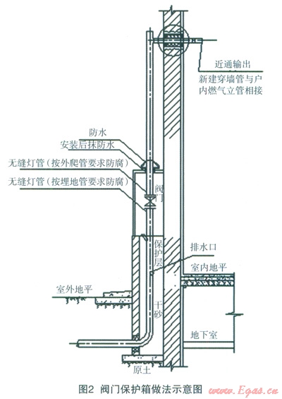 ①地上引入時設(shè)置室外閥門保護箱