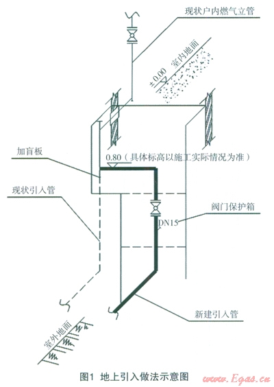 燃氣引入口為庭院燃氣管道與戶內(nèi)燃氣管道的分界點,分為地上引入口和地下引入口兩種,是管件的主要集中部位,也是安全事故多發(fā)部位。用戶引入口更貼近居民的日常生活區(qū)域,一旦發(fā)生泄漏事故將直接危及居民的人身、財產(chǎn)安全。岡此,能否對燃氣引入口進行安全、合理的改造,是實現(xiàn)安全用氣,造福于民的關(guān)鍵措施之一。