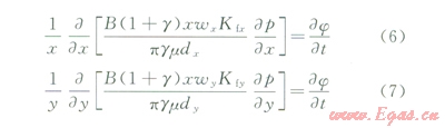 由于縫網(wǎng)內(nèi)裂縫寬度很小,因此可以假設(shè)流體在裂縫中的流動遵循流體滲流方程,則橢圓滲流方程為: