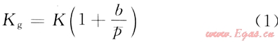 1941年Klinkenberg利用Warburg的滑脫理論建立了氣測滲透率(Kg)與絕對(duì)滲透率(K)的關(guān)系式[8]: